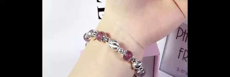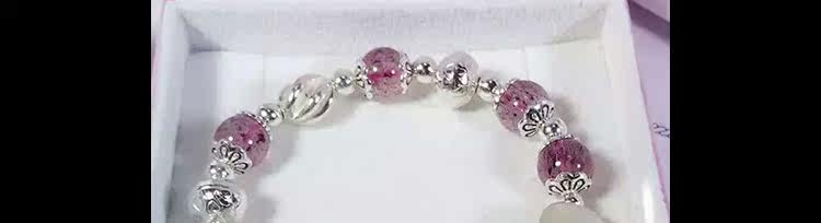 天然进口草莓晶手链蔷薇水晶手串粉晶手链泰国手工银鲤鱼时尚手饰