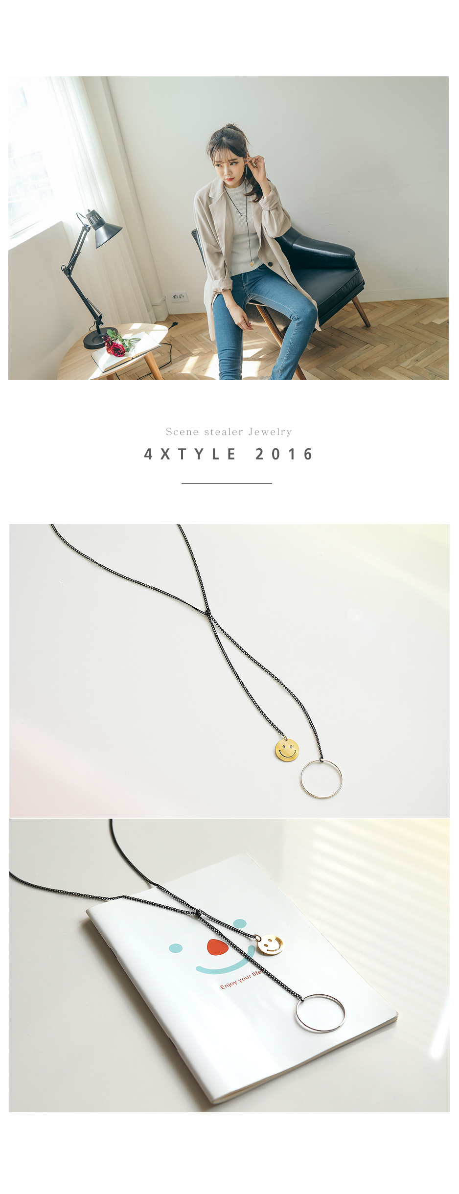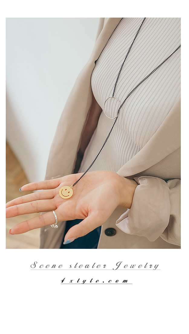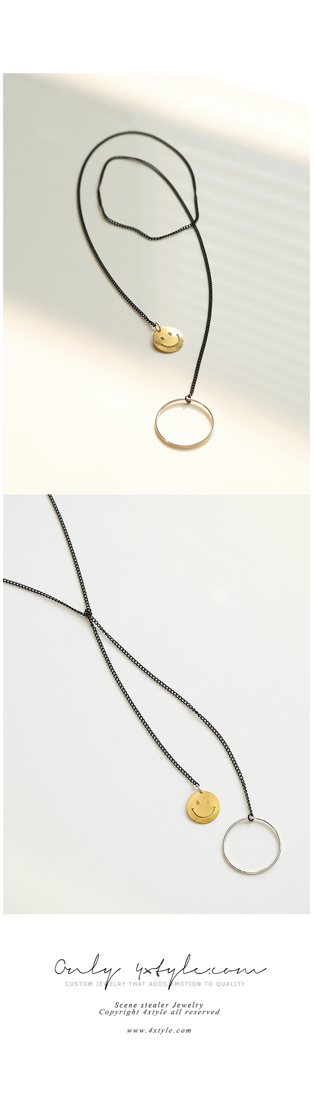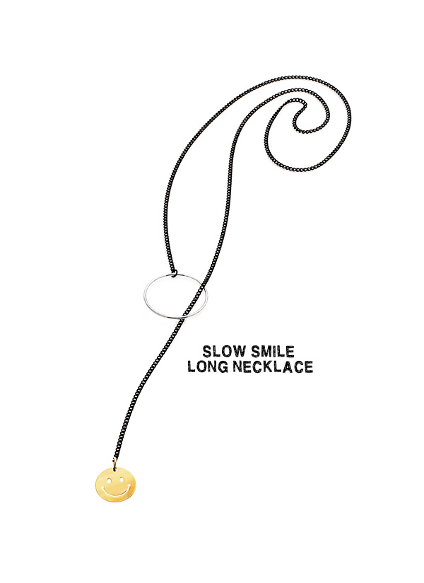 슬림한 블랙 롱체인에 귀여운 스마일 팬던트로