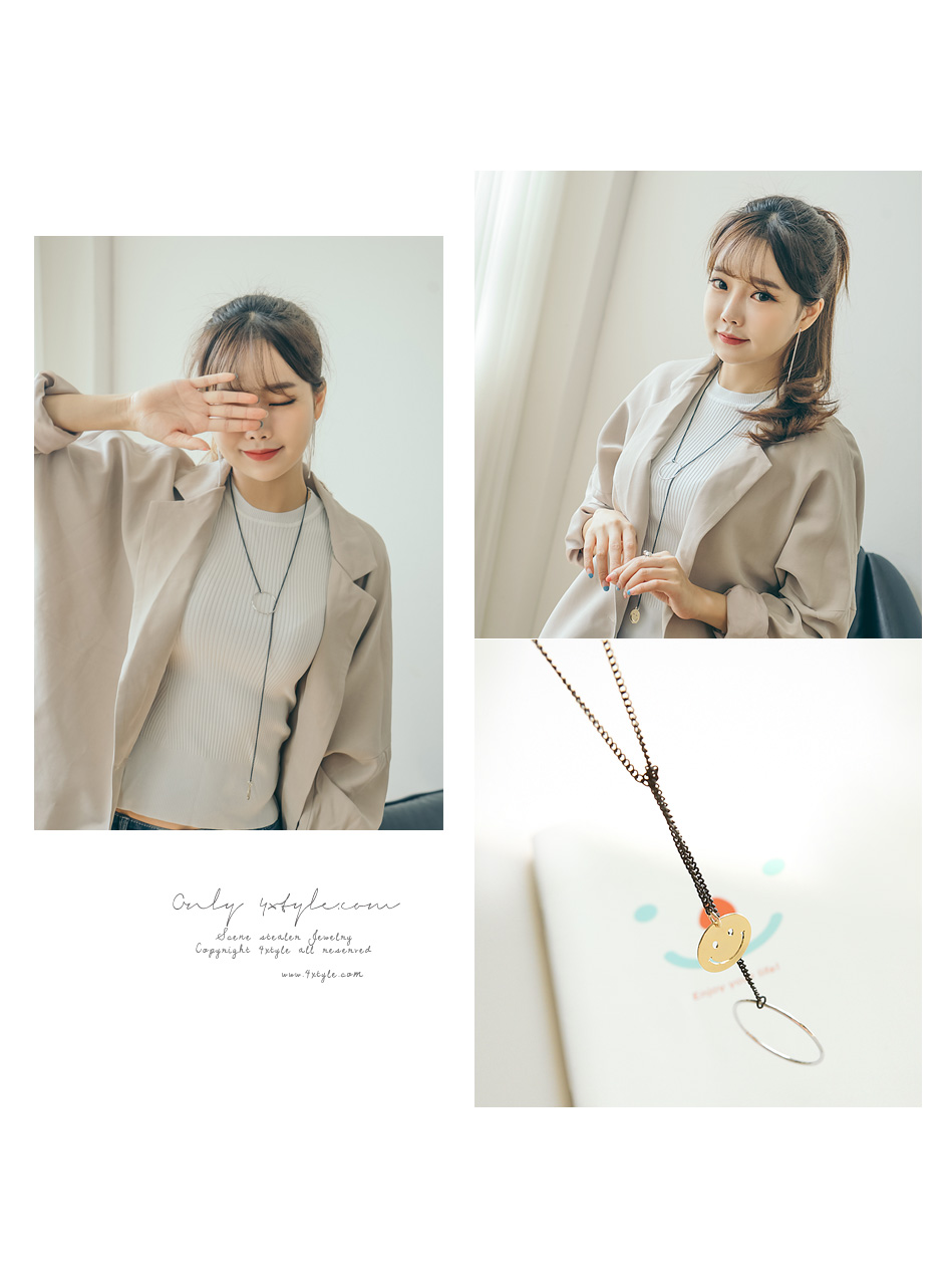 체인끝에 드롭된 라운드 고리에 스마일 팬던트를 걸어주어