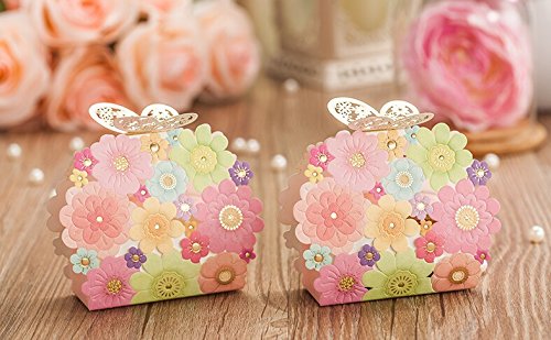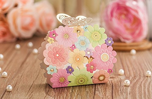 Worldoor 50pcs Wedding Favors And Gifts Box Flower Butterfly Laser Elegant Luxury Decoration Party Event Supplies Paper Candy Bag For Guests
