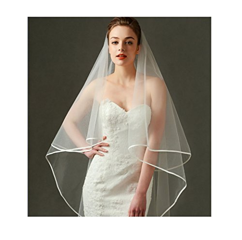 (MissDaisy)/Accessories/Scarves/DIRECT FROM USA/2 Tier Elegant Wedding Bridal Veil Ribbon Edge Tulle Veils White/Ivory 2 Colors