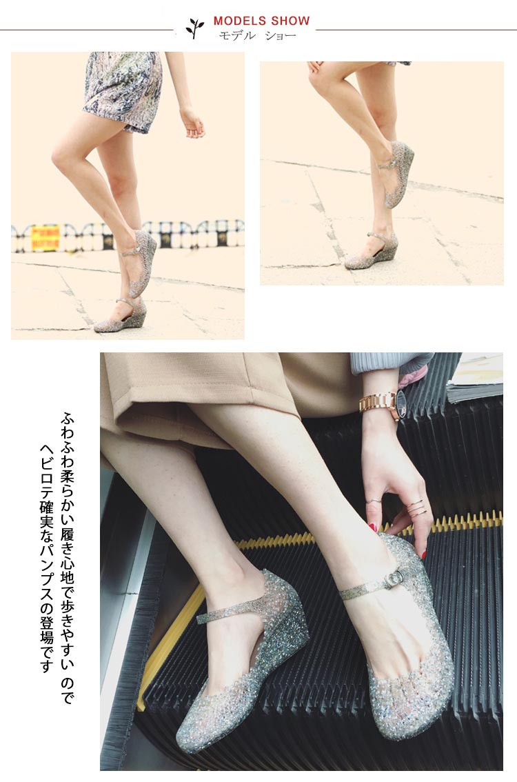 | ふわふわ柔らかい履き心地で歩きやすい のでヘビロテ確実なパンプスの登場ですウェッジヒールのふわふわパンプスは長時間歩いても痛くなりませんメッシュの編み目模様がおしゃれなデザインなので普段使いもできて、急な雨にも対応できるスグレモノでもあります海やプールなどのシーンにも最適です | |