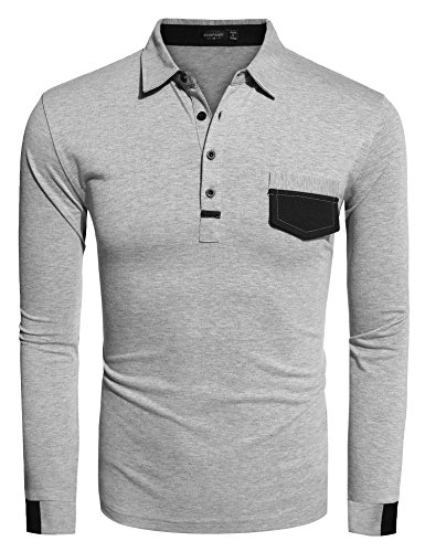 COOFANDY (쿠우(Qoo) 파운데이션)Coofandy 폴로 셔츠 맨즈 긴 소매 무지 추동 캐주얼 비지니스 일 통근 골프 웨어 평상복 껴입은 옷 상질 큰 사이즈 그레이 검정 S~XXL