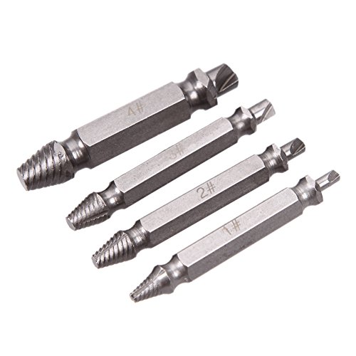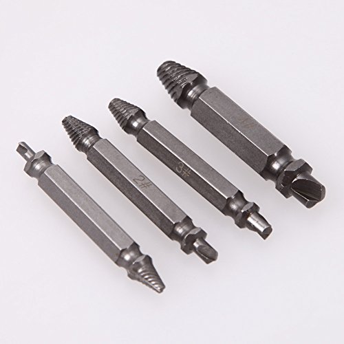 -. Feature : Easy removal of rusted, free-spinning screws and deck screws.Made of durable hardened steel / The 4 piece screw extractor set works with any drill and any screw size or bolt,Great for stripped, / Made of durable 4341# hardened steel(62HRC),Works on wood and machine screws as well as philips. / Easy to use, just two easy steps! An essential part of every tool kit box. / Packing include:1 set of 4 Screw Extractor Drill Bits,1 Box