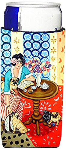 Lady with her Pug Ultra Beverage Insulators for slim cans 7259MUK