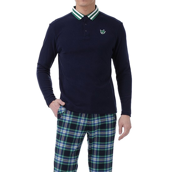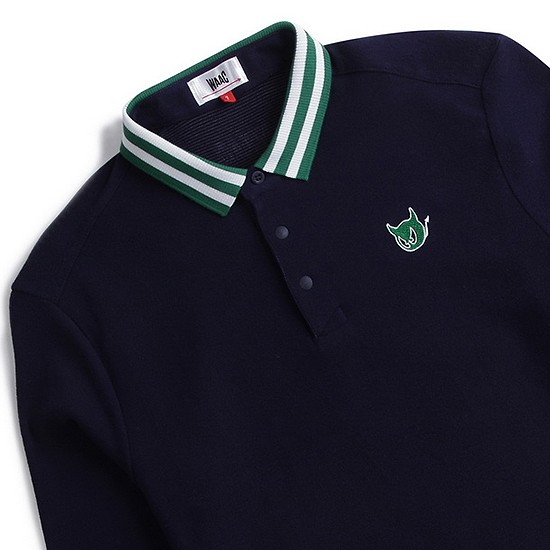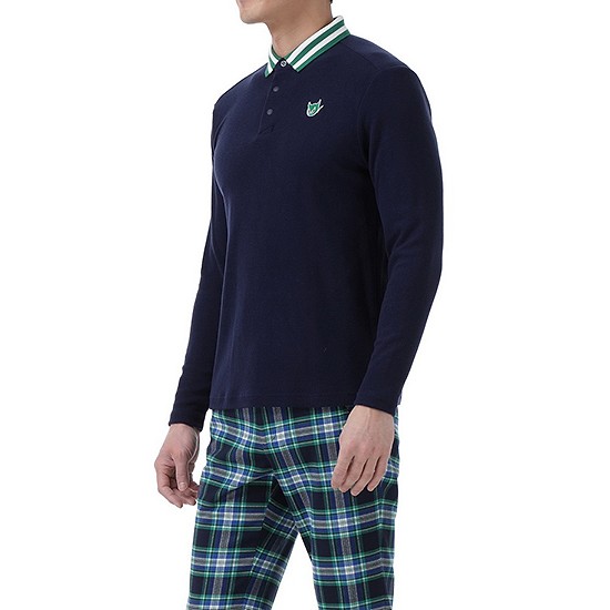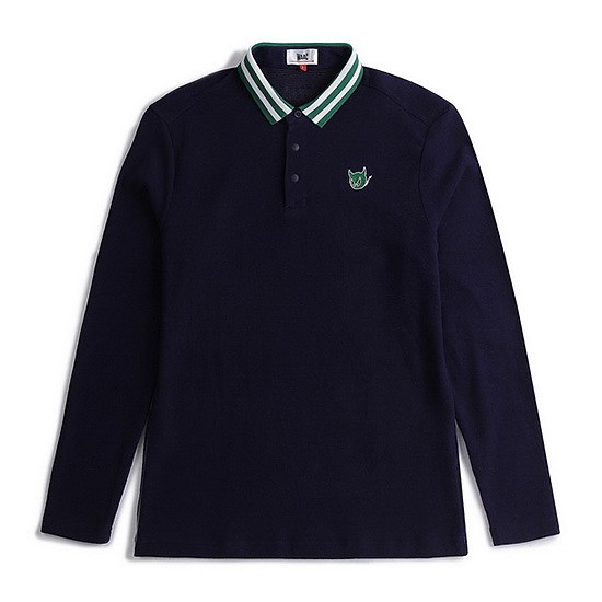 - 스트라이프 배색 포인트의 남성 카라 티셔츠.