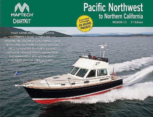 Studio : Richardson's Maptech Publisher : Richardson's Maptech Binding : Misc. Product Description ChartKit Region 15, 5th Edition Pacifice Northwest to Northern California Completely updated. Coastal and offshore coverage. Full-color charts, GPS waypoints, courses and distances, Yeoman points, and color aerial photos. Save hundreds of dollars on charts. 22 X 17", 90 chart pages.ChartKits have been a mainstay of boating for generations-more than 1 million ChartKits have been sold in the past 30 years! 89 Chart Pages A Great Value You'll save up to 90% compared to the cost of purchasing individual government charts. The Perfect Size Large enough to plot routes; small enough to fit on your lap. Easy to Use Pre-plotted waypoints and lat/long grids for your GPS; magnetic courses for your compass. Fully Referenced Geographic and alphabetical indexes quickly point you to the right page. Reliable A great primary or secondary navigational reference. No batteries required! 0