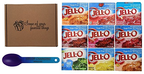 [Product Information]- Bundle Includes: 9 boxes of Jello Sugar Free gelatin with a color changing spoon also nice packed in a printed box that says: Some Of Your Favorite Things