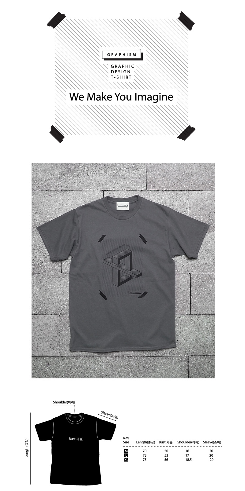 | -#포스터 시리즈 비정상적인 형태 : 도형의 불가능한 조합 -Fig. # Exhibition poster Abnornal shape : Impossible combination -Col. Charcoal -P.R.Inted by GRAPHISM 유니크한 그래픽 아트웍이 프린트 된 티셔츠 입니다. 부드러운 100% USA 프리미엄 코튼으로 제작되었습니다. 옆구리에 재봉선이 없어 착용이 매우 편안합니다. ASIAN SPEC, 180g/㎡ 100% USA COTTON, PREMIUM COTTON 180 g/m(5.3 oz per sq yd) 100% ring spun cotton preshrunk jersey knit Single needle 2 cm collar Taped neck and shoulders Tubular construction Double needle sleeve and bottom hems gildan.com 제조사 : GILDAN / P.R.Inted by GRAPHISM 제조국 : Bangladesh |