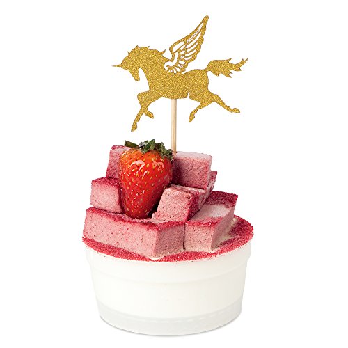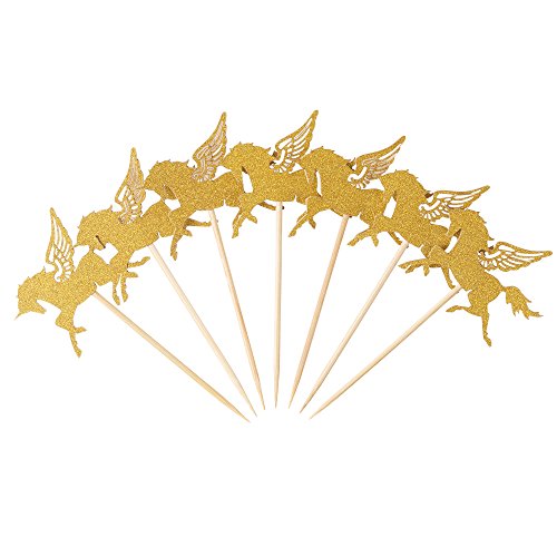 HIGH QUALITY: Our unicorn cupcake toppers are made of premium natural and non-toxic materials. Natural & Non-toxic material. Each shimmery unicorn cupcake topper is made with quality golden paper and measures 2 inches (5cm) long.