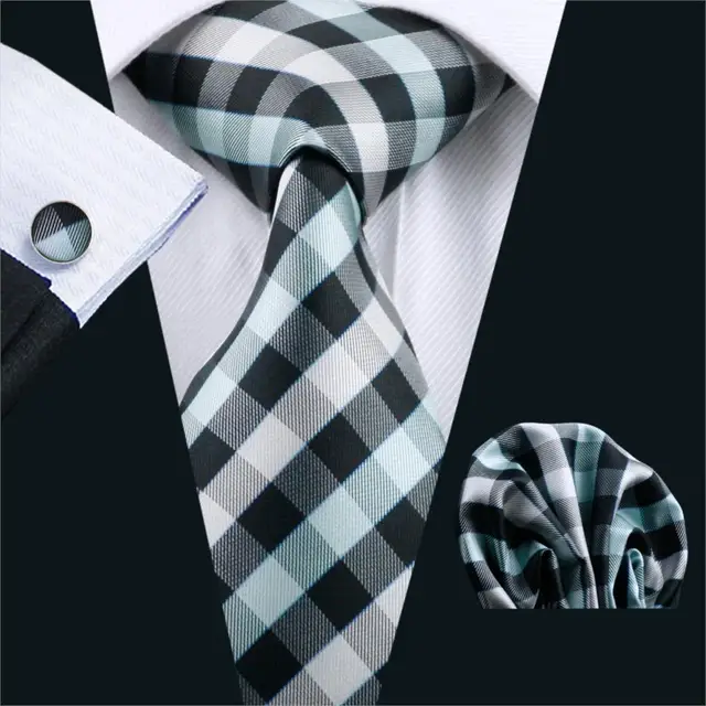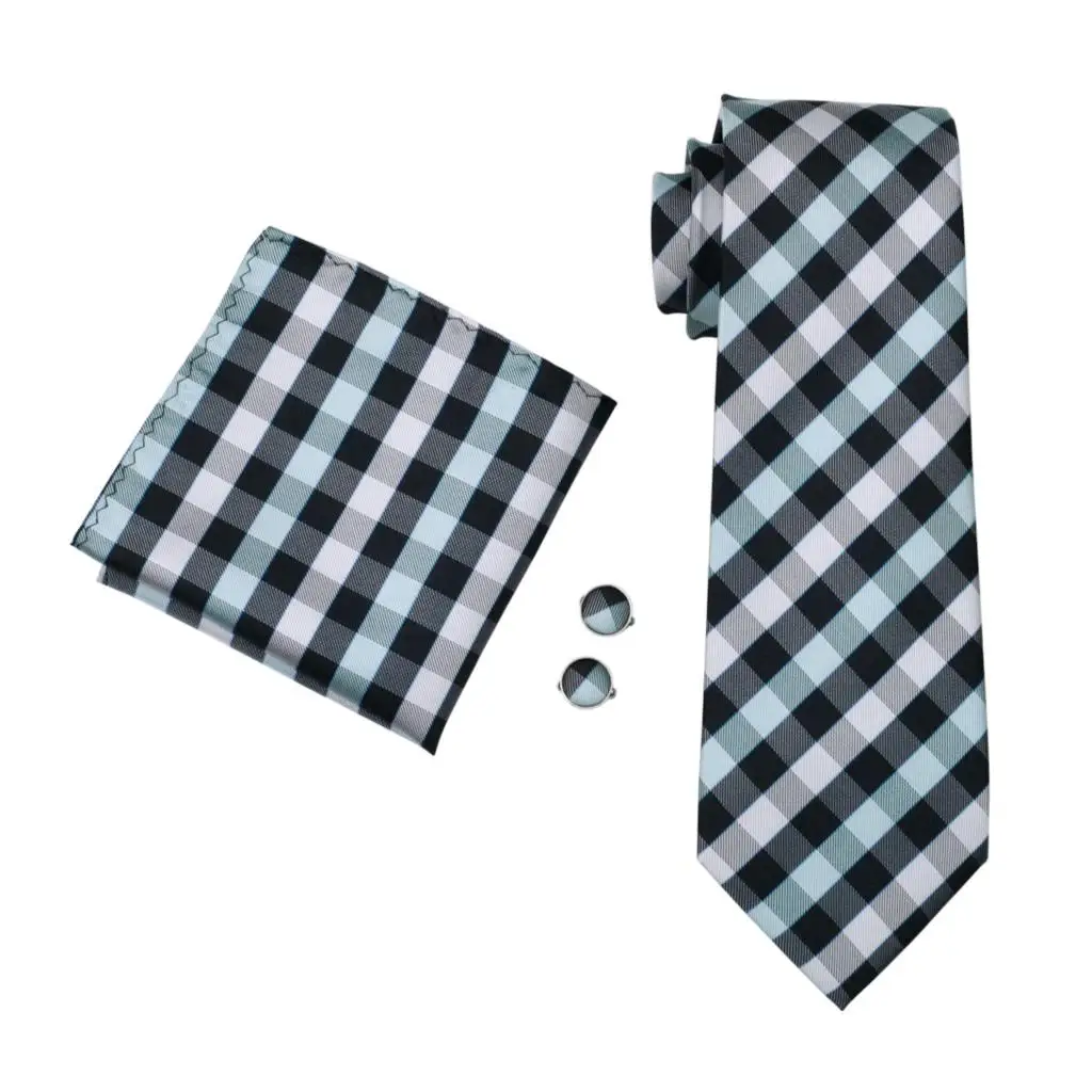| [해외]FA-951 넥타이 격자 무늬 실크 클래식 자카드 짠 넥타이 손수건 커프스 세트 비즈니스 웨딩 파티 무료 배송 |