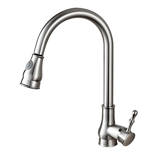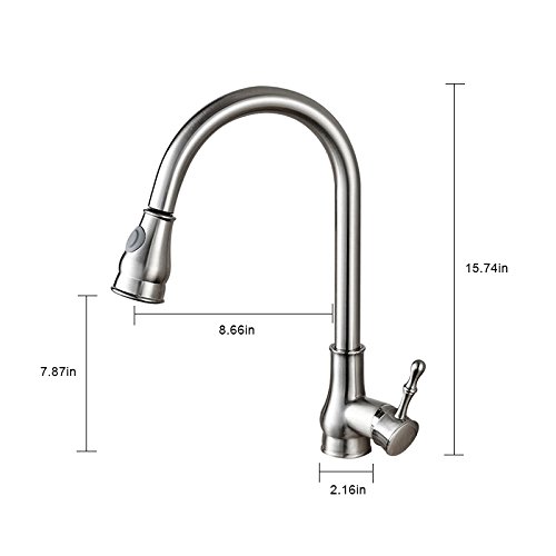 LiteTouch single-lever flow control. Durable pull-out spout sprayer. Two kinds of water mode, stream and spray, mix hot and cold. Easy-clean ruber nozzles prevent hard water build-up.High-arch 360 Degree Rotatable Gooseneck Spout and Ultralong Spray Hose for Wide Range Clearance of Sink.