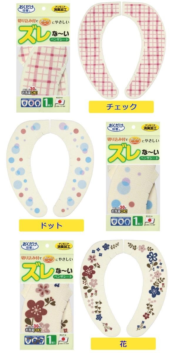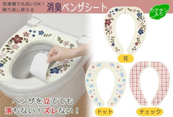 トイレをもっと明るく楽しく♪華やかなデザインの消臭ベンザシートです。便座に置くだけでピタっと吸着。便座を立ててもずれず、座った時のひんやり感もありません。汚れたらお洗濯して繰り返し使えます。 |