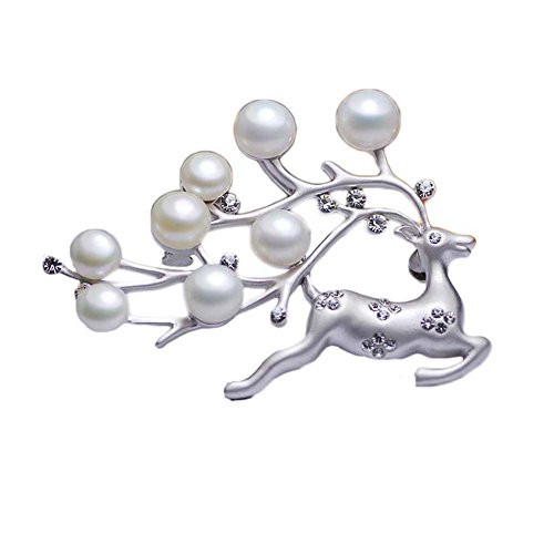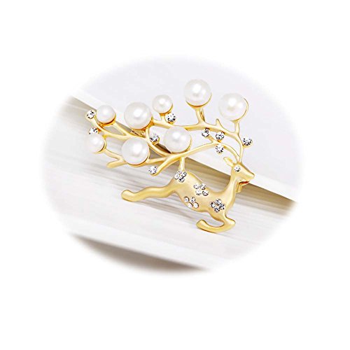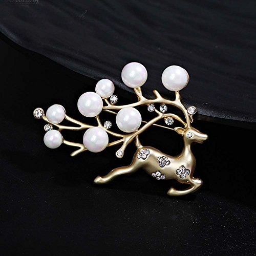 Christmas Brooch pin - Xmas Wapiti Elk Deer Pearl Brooch Pin Animal Breastpin For Women
