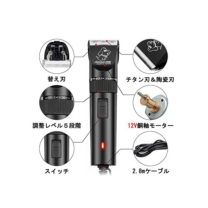 원본상품명:Focuspet ペットトリミングバリカン 犬 猫 電動バリカン 2.8mケ?ブル 低?音 低振動 家庭用 業務用 クリ?ンブラシ ハサミ 櫛付き ペット用シェ?バ? 電動クリッパ? 調整可能 全身カ
