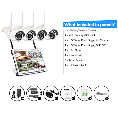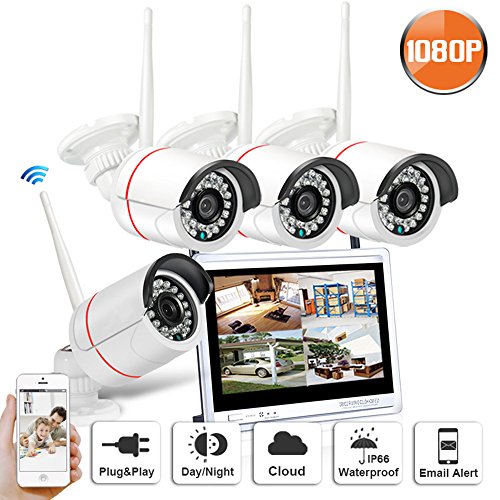 SW SWINWAY 12'' Wifi NVR 1080P Security Camera System Wireless with 4pcs 2.0MP HD WiFi Security Cameras (Built-in Router, IP66, Without Hard Drive)