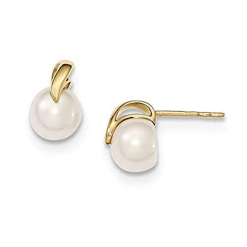 Solid 14k Yellow Gold (7-8mm) Button FW Cultured Pearl Post Earrings