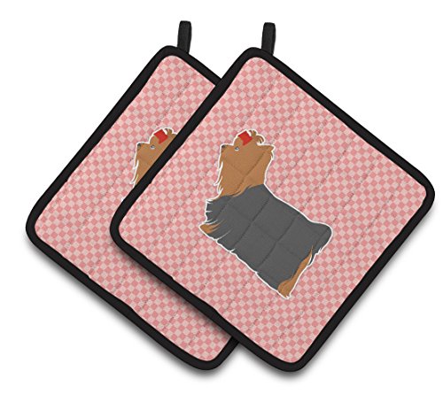 Caroline's Treasures Yorkshire Terrier Yorkie Checkerboard Pink Pair of Pot Holders BB3634PTHD, 7.5HX7.5W, Multicolor
