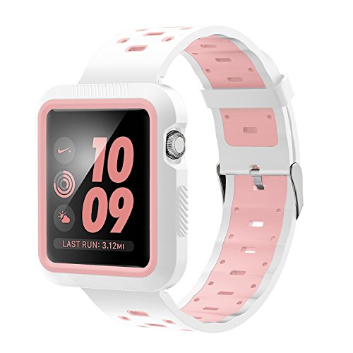 -. Title : GOSETH for Apple Watch Series 1/Series 2/Series 3 バンド 運動風耐汗シリカゲル バンド 軽量 通気 高品質 スマートウォッチ用交換ベルト (38mm, ピンク&白)