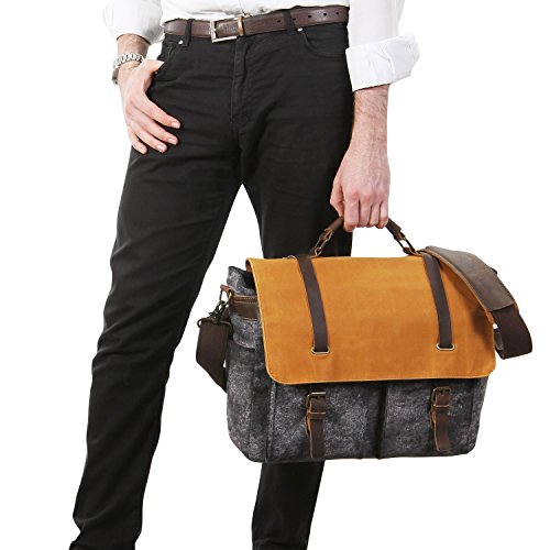 -. Title : Lifewit Men's 15.6 inch Waterproof Messenger Bag Waxed Canvas Laptop Shoulder School College Bag