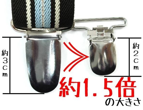一般的なサスペンダークリップの約1.5倍もある大きいクリップが、しっかりとソファカバーをロックします!!最大約130cmぐらいまで伸びるので、少し大きめのソファでも対応可能。ズレ防止で素敵なソファカバーライフを楽しみましょう♪ |