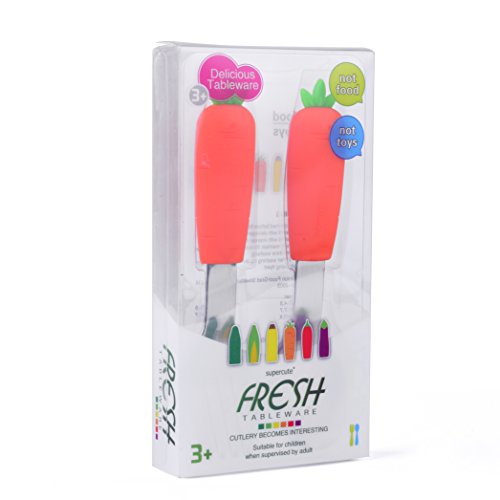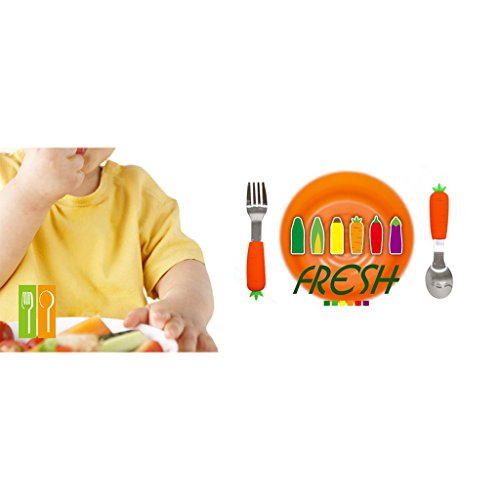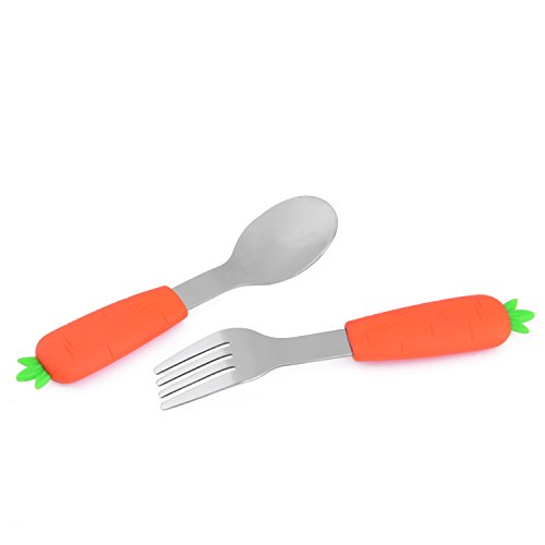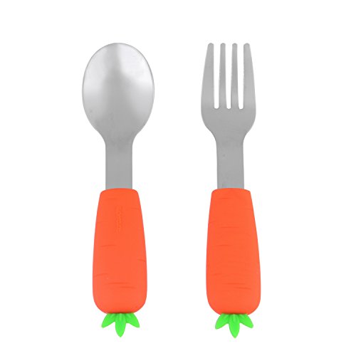 Baby Cool Vegetable Baby Training Fork and Spoon (2-Piece Set) Soft, Non-Slip Design with Rounded, Kid Safe Edges | Early Learning for Toddlers | Boys and Girls - (Carrot)