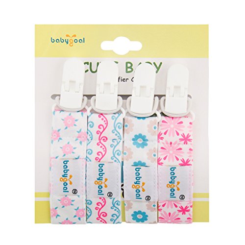 -. Binding : Baby Product -. Brand : babygoal -. Color : Girl Color 01 -. Feature : Materials: polyester with waterproof PUL fabric,come with a plastic clip. Size: 17cmX2.5cm / Weight: 10g for each pieces, 40g for each pack.(4 pieces in each pack , No pacifier included.) / Keeps pacifier clean and close to baby. Secure clasp on your baby's clothes and do not leave baby alone with the clips to avoid safety problem. / A piece of elastic attached to the other end to loop through the PUL cloth facbric. A variety of ribbon used to hold it all together. / Each one is made with a white plastic clip that baby can't pull off to lose. Will not harm your child's clothes and safe for babies teeth if they chew on it. -. Label : Huapin -. Manufacturer : Huapin -. MPN : 4PS08 -. PartNumber : 4PS08 -. ProductGroup : Baby Product -. ProductTypeName : BABY_PRODUCT -. Publisher : Huapin -. Studio : Huapin -. Title : Babygoal Baby Girl Pacifier Clips, 4 Pack Plastic Teething Clips Fits All Pacifier Styles with Pacifier Case