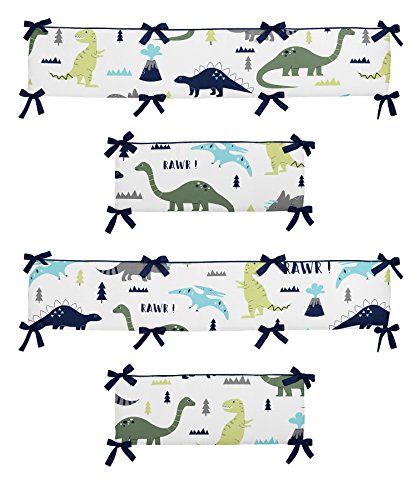 Studio : Sweet Jojo Designs Publisher : Sweet Jojo Designs Binding : Baby Product Product Description Complete your nursery with the Blue and Green Mod Dinosaur Crib Bumper by Sweet Jojo Designs. This bumper is made exclusively to coordinate with the Sweet Jojo Designs crib bedding collection. Fits all standard cribs and has top and bottom ties for a secure fit. Dimensions: (2) Short Sides: 27 in. x 10 in. each and (2) Long Sides: 52 in. x 10 in. each. 0