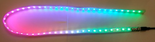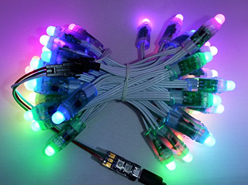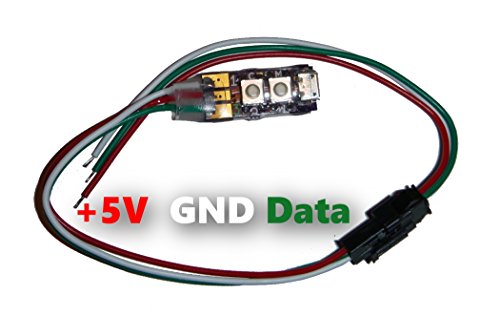 This listing includes one water-resistant WS Basic controller with a JST 3-pin connector and mating tail to attach to your WS2811/12 LED project. Package does not include USB cable or power supply as they are application specific. ****** The WS Basic is a compact controller for the Worldsemi WS2811 or WS2812 intelligent control LED. The WS Basic is sold in several forms; ready to use, kit, and fully integrated products. Measuring just 30mm x 12mm x 8mm the WS Basic offers more than you might expect. The light engine uses color and intensity compression for a smoother display that consumes less power. • 22 Motion patterns • 24 Color modes • 10 Speed settings • 6 Brightness levels (that's over 30,000 permutations) • On-LED menu for accurate control • Settings saved on power loss • 800kHz signal rate (legacy 400kHz capable) • Signals 150 LEDs • Automatic power supply health monitoring and display dimming ****** A simple yet powerful menu allows changing the pattern, color, speed and brightness. (M)ode Button: changes what setting is being adjusted. (C)hange Button: changes the current setting. Operation: Pressing either button will open the On-LED menu. The bright LED indicates which menu is active • LED 1 : Pattern Menu • LED 2 : Color Menu • LED 3 : Speed/Direction Menu • LED 4 : Brightness Menu ****** The power supply should be capable of about 1 Amp for every 50 WS2811/12 LED's in use. The vast majority of problems (discoloration, flickering, flashing) can be resolved by improving the power source. A manual can be found at jopeldesigns.com or by contacting support@jopeldesigns.com (please add exemption in spam filter).Feature