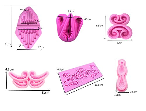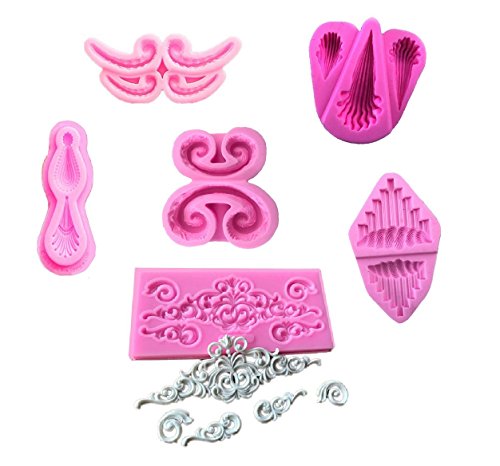 (Set of 6)Baroque Style Curlicues Scroll Lace Cake Fondant Silicone Mold, Cake Fondant Gum Paste Mold, Cupcake Topper,DIY Cake Border Decorating, Jewelry, Polymer Clay,Crafting Projects