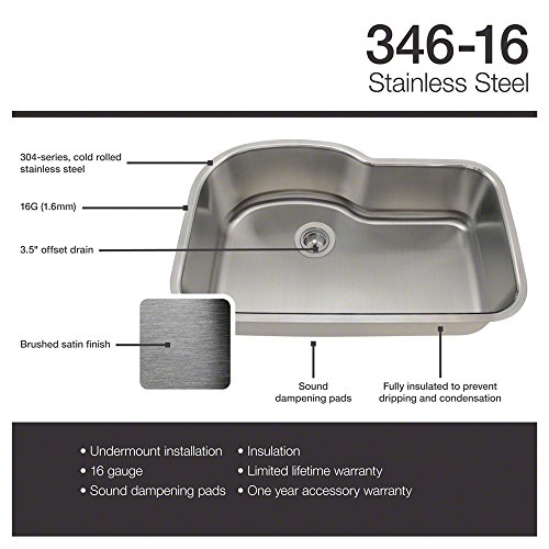 346 16-Gauge Undermount Offset Single Bowl Stainless Steel Kitchen Sink