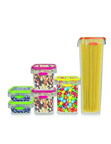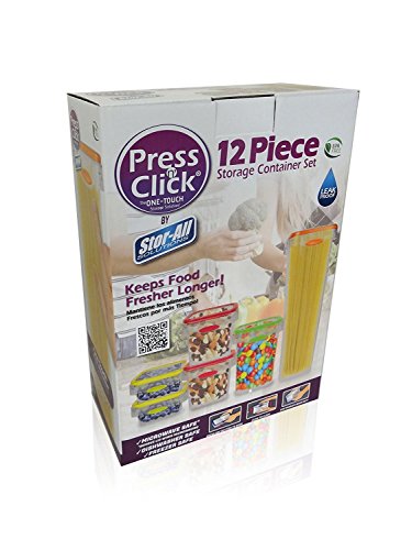 Stor-All Solutions PNC503SQ12/6 12 Piece Press N Click Food Container Set, Clear/Grey Trim