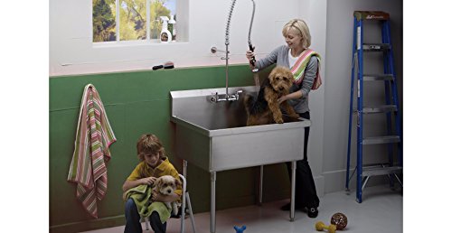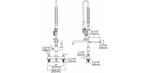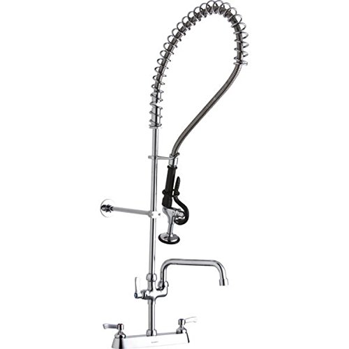 Elkay Solid Brass Commercial Kitchen Faucet with 8" Swivel Spout and Stainless Steel Sprayer, Dual Hole Mount