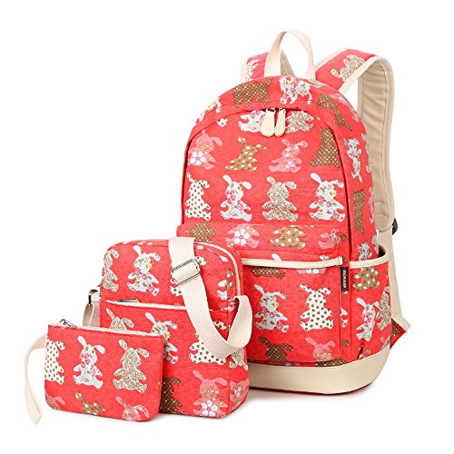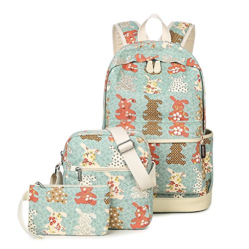(CN'Dragon Bag)/Accessories/Luggage, Bags Travel/DIRECT FROM USA/CN'Dragon 3PCS Fashion Printing Rabbit Canvas Backpack Printed Schoolbag Swagger Bag