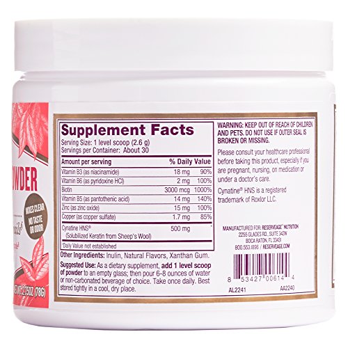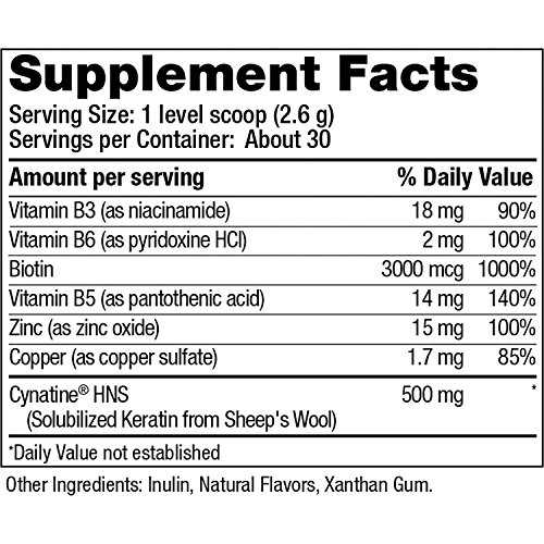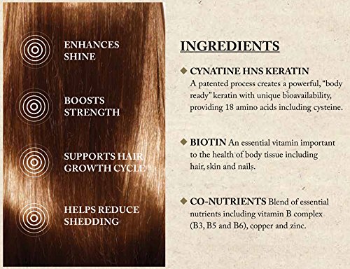 KERATIN + BIOTIN: Two beauty boosting powerhouses in one! Cynatine HNS Keratin is derived from a patented process that creates a powerful, body-ready keratin with unique bioavailability. Biotin is included as it is an essential vitamin important to the health of body tissue, including hair, skin and nails.