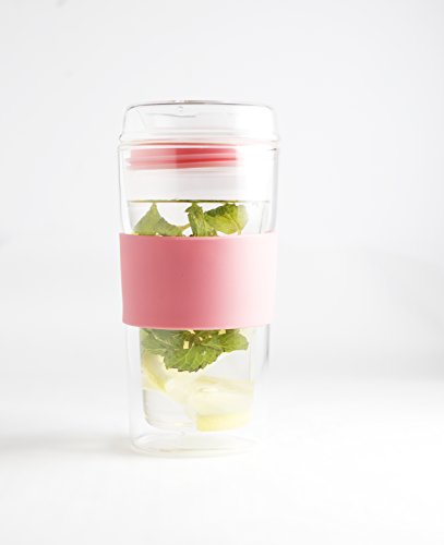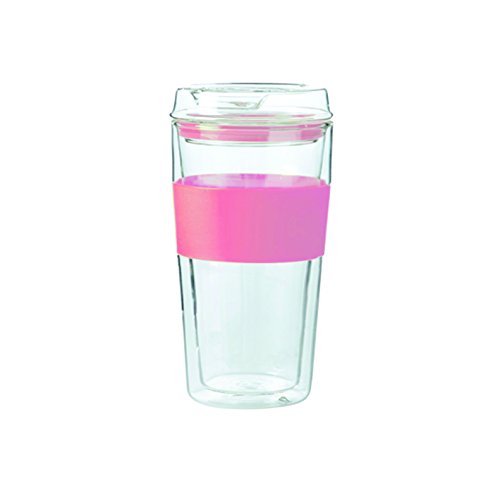 GLASS LID: This insulated mug comes with a glass lid fitted snugly with a pink silicone protective ring that makes it easy to place on and off the mug. The lid makes it easy to sip from while the eco friendly glass keeps the contents of your beverage free of toxins and retains the original taste. It also has a matching non-slip silicone band that makes it easy to hold and sits perfectly in cup holders.