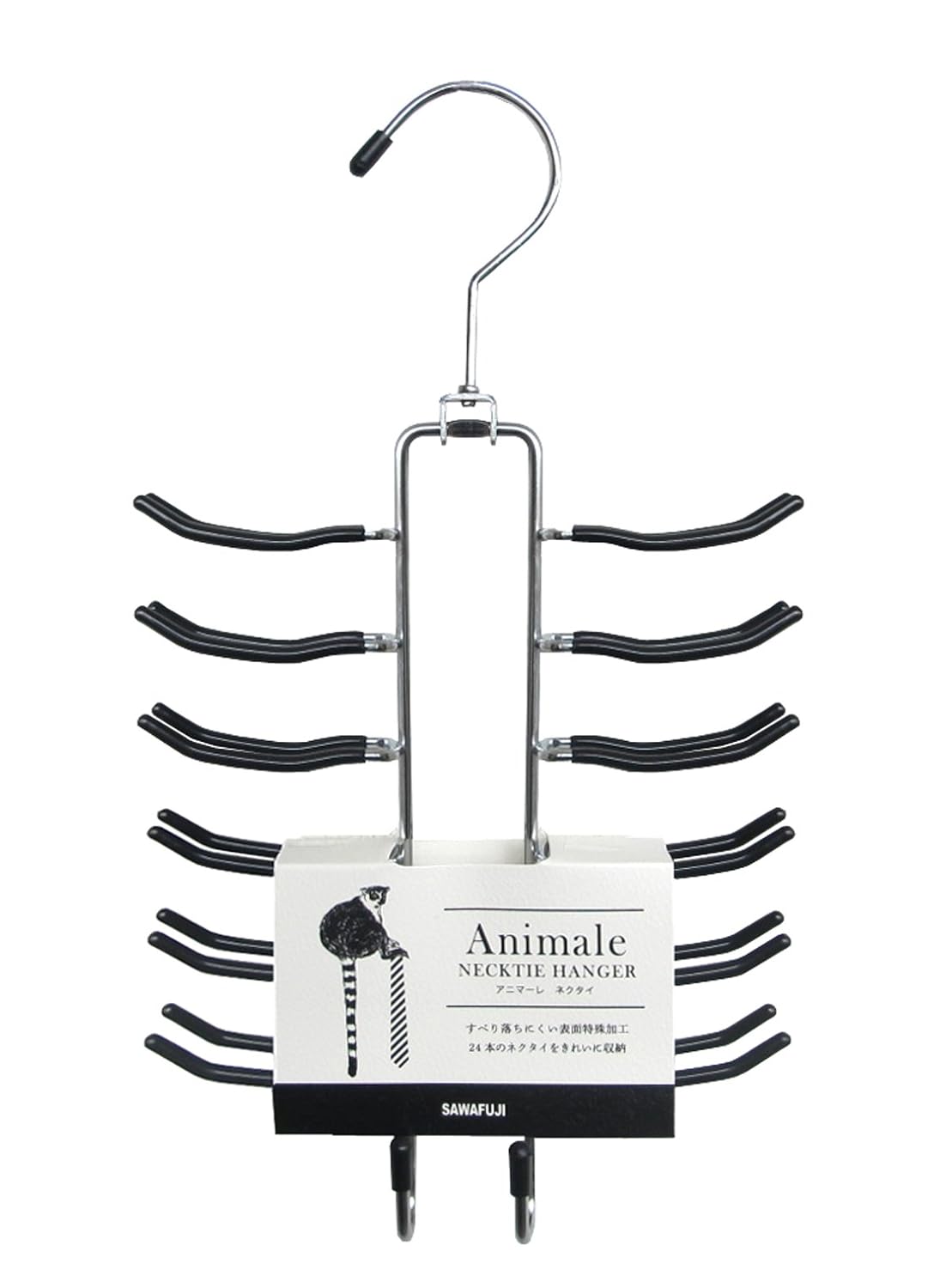 色:ブラック パターン(種類):アニマーレ ネクタイハンガー サイズ:約29.3x16.5x3.5cm 材質/本体:スチール/スベリ止め:塩化ビニル樹脂 生産国:中国
