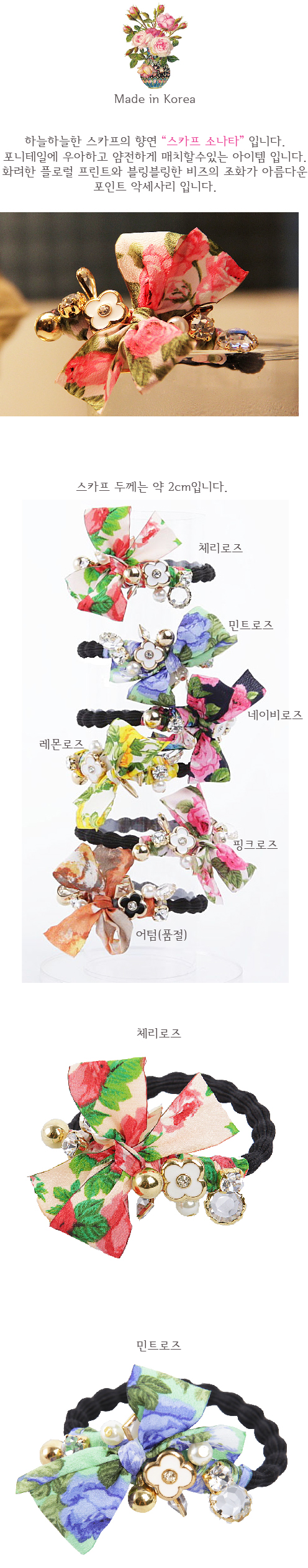 상품명 : 스카프 소나타 플라워 비즈 헤어슈슈