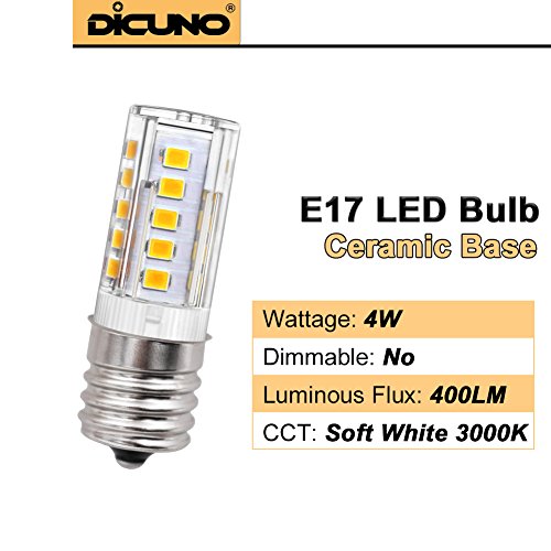 DiCUNO E17 LED Bulb,Appliance Bulbs, Microwave Oven, Stovetop Light, 4W 400lm, Warm White 3000k, 40w Equivalent Replacement Incandescent Bulb, 6-Pack.