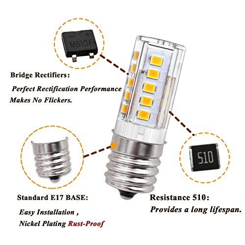 - ✔ Excellent Replacement: E17 intermediate base appliance bulbs for over counter microwave ovens appliance, desk lamp, ceiling fan light fixture, freezer etc. (Don't Install the Bulb Inside Microwave Oven.)