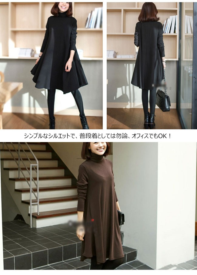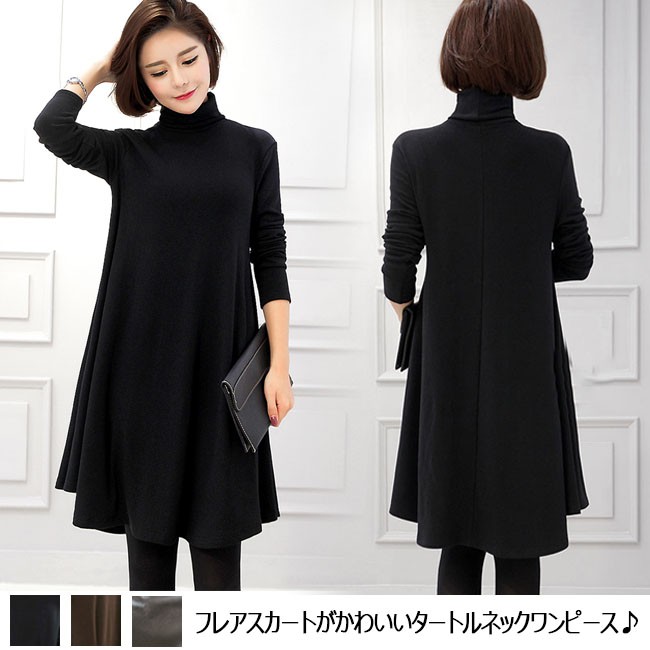 | 商品名 | ワンピース 膝丈 レディース フレア タートルネック Aライン シンプル フレアスカート ハイネック 長袖 通勤通学 OL お呼ばれ 2017秋冬新作 |