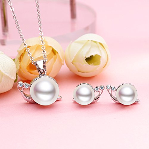 Necklace Length: 46cm(18.1")-48.8cm(19.2"), Pendant Size: 1.7cm(0.7")by2cm(0.8"), Earring Size: 0.9cm(0.4")by1.3cm(0.5"), One Earring Weight: 1.5g. Necklace Pearl Size: 10MM, Earring Pearl Size: 8MM.