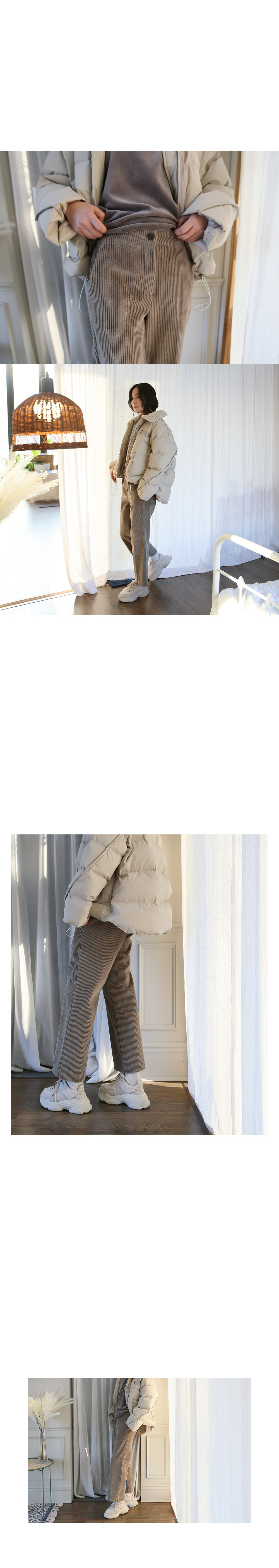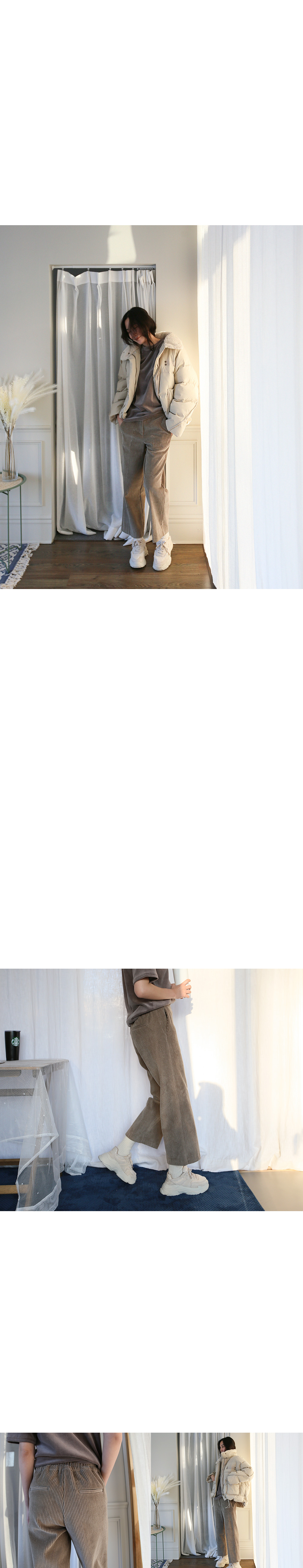 트렌디한 골덴 와이드 팬츠소개해요 골반 부분은 슬림하게 잡아주고 골반아래로 일자로 떨어지는 핏이라 부해보이지 않아요:) 와이드한 핏이 다리도 길어보이고 통이 넓어 체형을 커버해 주고 굵은 골지 소재로 빈티지한 매력의 팬츠랍니다 부드러우면서도 도톰한 소재로 한 겨울에 포근하게 입기 좋아요^^ 피팅 컬러와 사이즈는 베이지,Free입니다