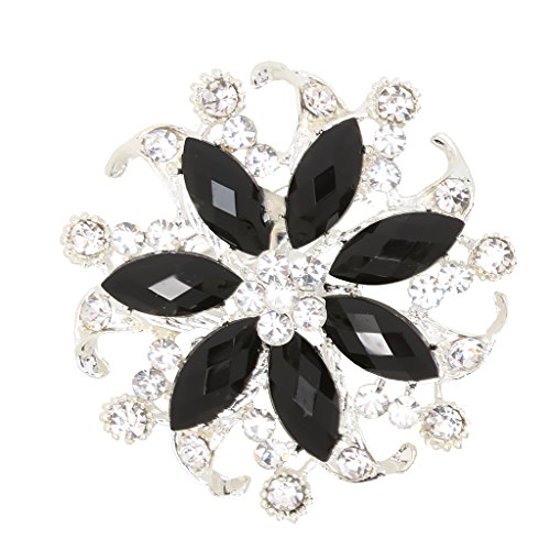 -. Title : SONONIA 黒と銀 ファッションジュエリー クリスタル ラインストーン 花柄 ブローチピン