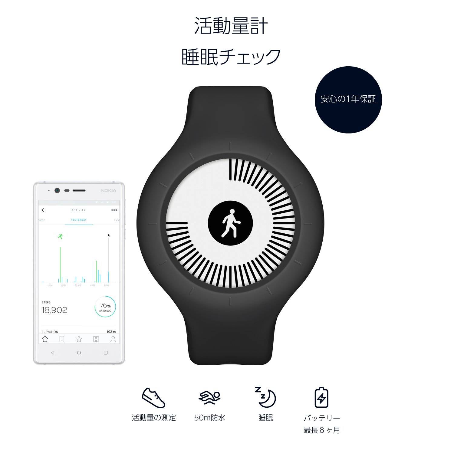 It is an activity tracker that automatically recognizes and keeps track of everyday activities (walking, running, swimming) and sleep cycles.