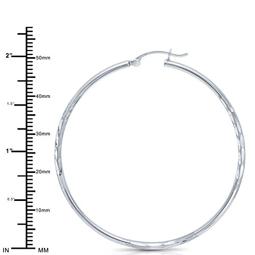 MCS Jewelry 14 Karat White Gold Diamond Cut Round Hoop Earrings (Diameter: 50 mm, Width: 2 mm, Weight: 3.1 Grams )