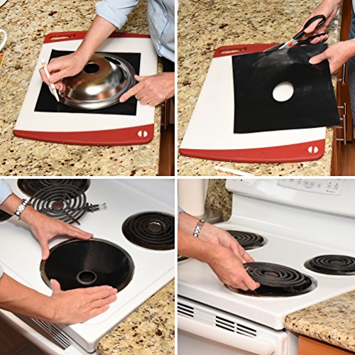 MAKE STOVE CLEANING EASY WITHOUT USING CHEMICAL CLEANING PRODUCTS - Our non-stick stove top protector burner liners go under your burner to catch grease and cooking splatters. When you go to clean your stove top it's as simple as rinsing your liner and putting it back!