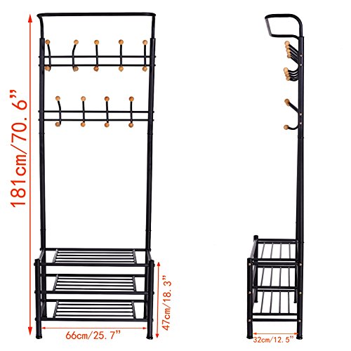 -. Feature : Material: Metal; Overall height: 181cm/70.6inch; Length: 66cm/25.7inch / Easy installation and remove. Modern minimalist design. / High quality metal construction, sturdy and durable. / Multiple functions hangers and several layers to meet you at the most. / Package Content: 1 x Multifunctional Clothes Shoes Rack