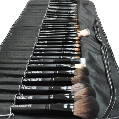 -. Feature : 35 pieces of High Quality Makeup Brushes Set with Pure Black Bag Design holder bag / Essential for all of your makeup needs / Makeup Brushes Include: Powder, Blush, Eyeshadow, Applicators Brushes / Protective portable *Roll-up* holder bag, easy to carry