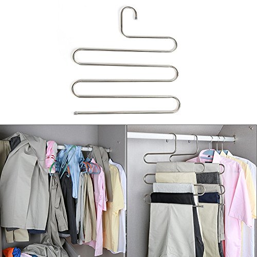 -. Title : Eleling 5 Layers Pants Clothes Rack S Shape Multi-Purpose Hangers For Trousers Tie Organizer Storage Hanger
